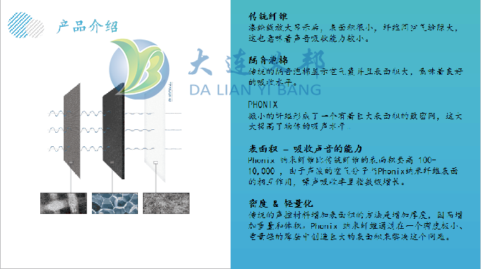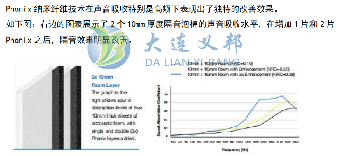 Phonix 優(yōu)勢在輕和薄,它由靜電紡絲工藝生成,為聲波的吸收提供了更大的表面積,Phonix 具有獨(dú)特的改善非紡織物、纖維和隔音泡棉的聲音效果的能力。