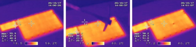 加熱層瞬時響應(yīng),均勻加熱,并且具有高破損的特性,即使加熱層出現(xiàn)幾個破損區(qū)域,整個系統(tǒng)不受影響,系統(tǒng)仍然可以繼續(xù)工作,另外也沒有“熱點”的趨勢,消除安全隱患。