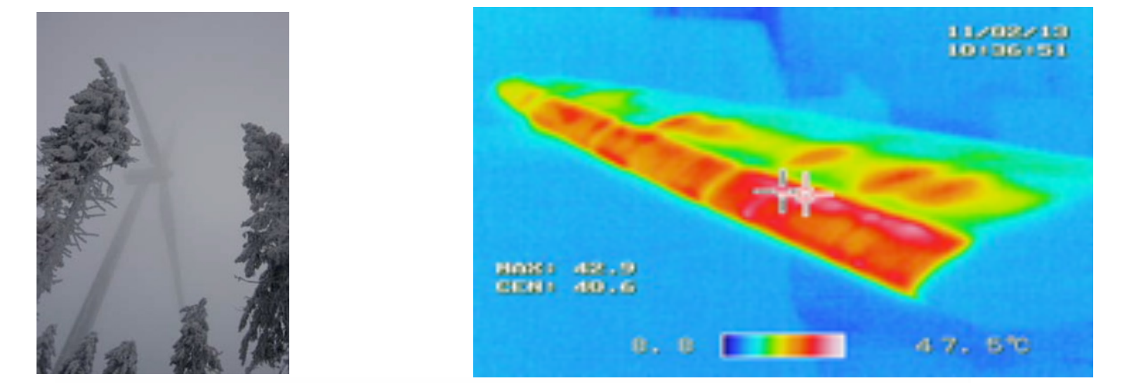 防除冰系統(tǒng)分為防冰和除冰模式,防冰模式指風(fēng)機(jī)在運(yùn)行過程中防除冰,目標(biāo)為最短的停機(jī)時間即0停機(jī),除冰模式指由于霜冰造成的被迫停機(jī)后,對葉片進(jìn)行除冰,這種模式可以保證很少的停機(jī)時間。