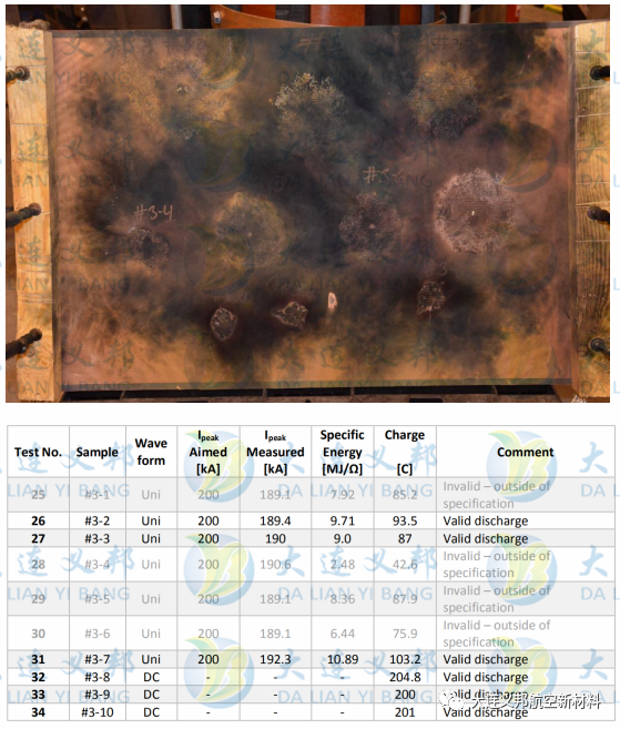 測(cè)試結(jié)果:經(jīng)過3次長(zhǎng)波和短波的沖擊后測(cè)試板表面金屬網(wǎng)損壞下面復(fù)合材料部分無(wú)損壞,經(jīng)過長(zhǎng)波和短波沖擊后金屬網(wǎng)傳導(dǎo)區(qū)無(wú)斷裂/熔斷。