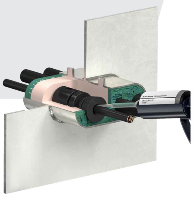 GEAQUELLO? E 950船舶多重管線貫穿密封系統(tǒng)包含9種產(chǎn)品,其中三種產(chǎn)品為艦船防火系統(tǒng)的核心部分,其余6種產(chǎn)品可根據(jù)使用環(huán)境按照需求來選擇。