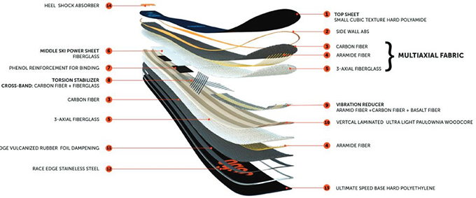 通常用于滑雪板的頂層和底層