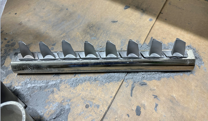將葉片部件放在工裝夾具中后,填補(bǔ)部件與夾具之間的縫隙,以防止涂層蒸汽滲透到葉片根部區(qū)域,尤其葉根榫齒部位,適用于大的工裝夾具。